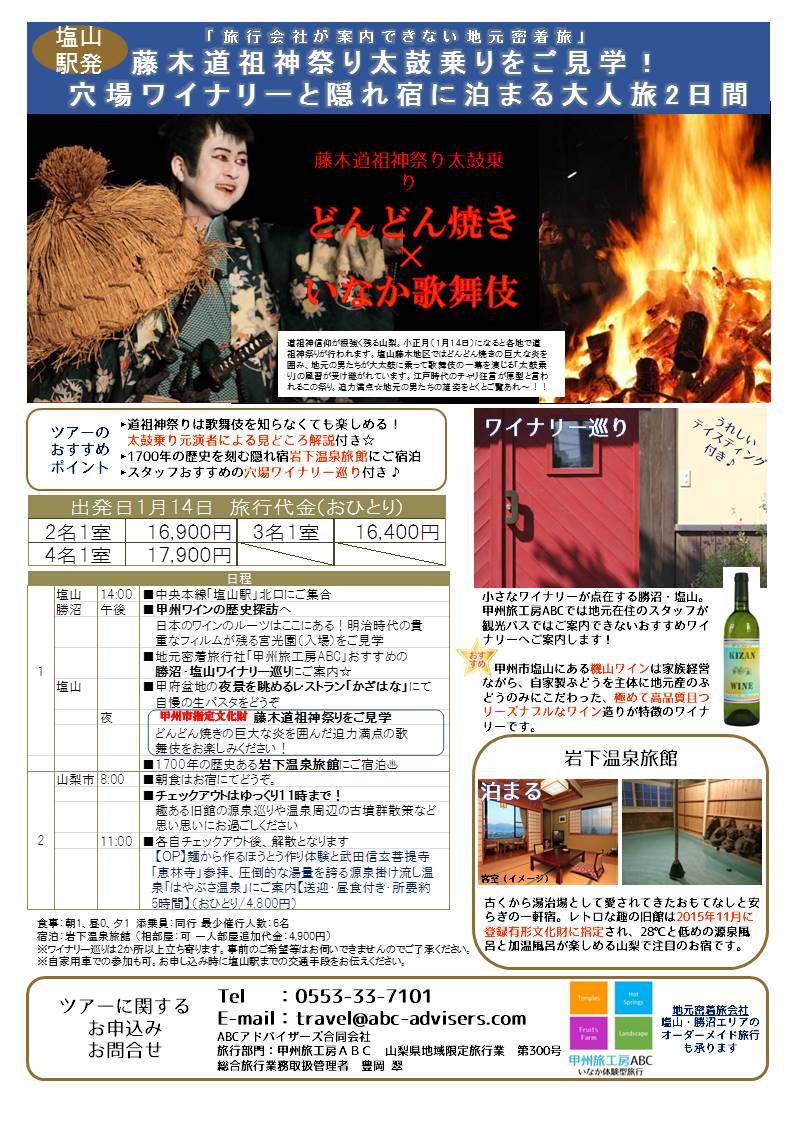 詳細は甲州旅工房ABC Facebookページ または お電話にてお問合せください。